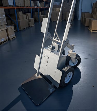 We sell and repair power dollies. They are perfect for moving larger bounce houses, slides, obstacle courses and more. They can also transport tables, chairs, and other equipment. Your crew can handle more jobs since the power dolly does the heavy transport. Our current model makes it easy to get to most back yards.